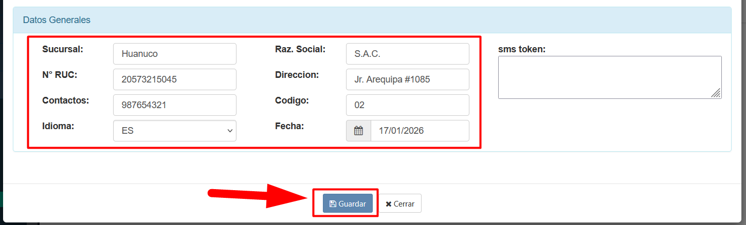- PASO 4: Registrar los datos generales de la Nueve Sede, luego haz clic en en el bot贸n "Guardar" para crear la Nueva Sede.