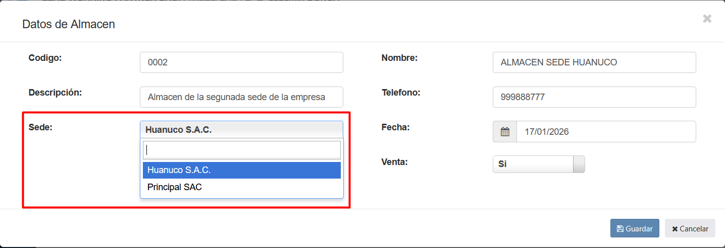 - PASO 7: Ingresar al m贸dulo de "Almacen" y a la vista de "Almacenes", crear un nuevo almac茅n y asignar el almac茅n a la nueva sede.