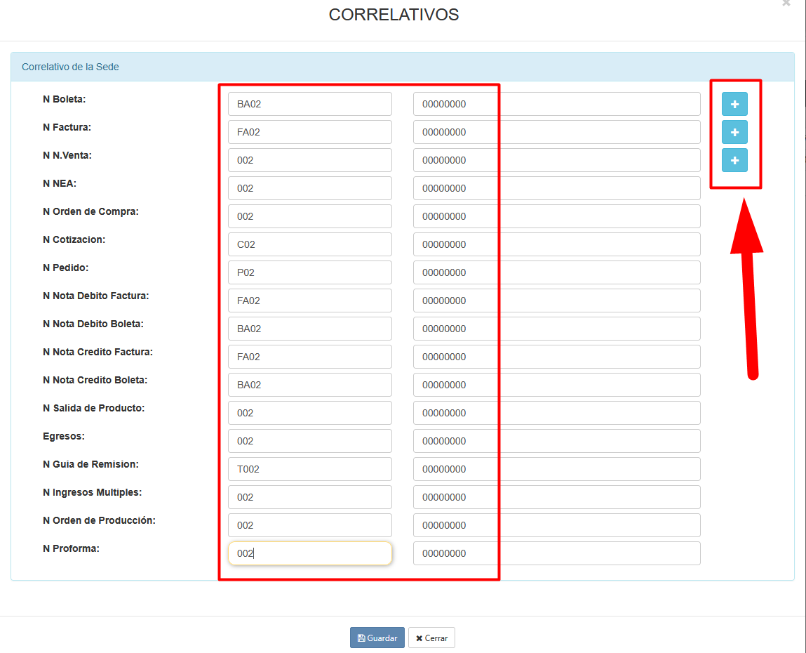 - PASO 6: Ingresar al m贸dulo de "Configuracion" y a la vista de "Correlativos", y configurar las series y correlativos. Tambi茅n verificar que existan el HTML de las plantillas de impresi贸n, en caso de estar vac铆o, copiar y pegar el HTML de la Sede Principal.