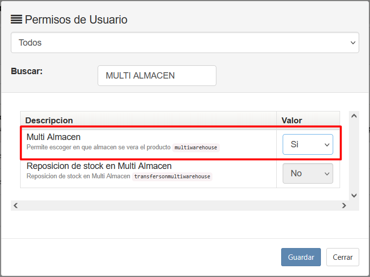 - PASO 7: Ingresar al m贸dulo de "Configuracion" y a la vista de "Variables" y activar la variable "Multi Almacen" en ambas sedes.