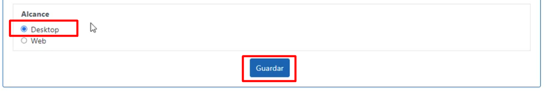 - PASO 11: En Alcance, seleccionar "Desktop" ya que funciona mejor que "Web". Luego haz clic en "Guardar", y en las 2 ventanas de confirmaci贸n que aparecer谩n, haz clic en el bot贸n "OK".