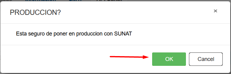 - PASO 16: Haz clic en el bot贸n "OK" para confirmar la vinculaci贸n con el portal SUNAT del cliente y luego haz clic en el bot贸n "Guardar".