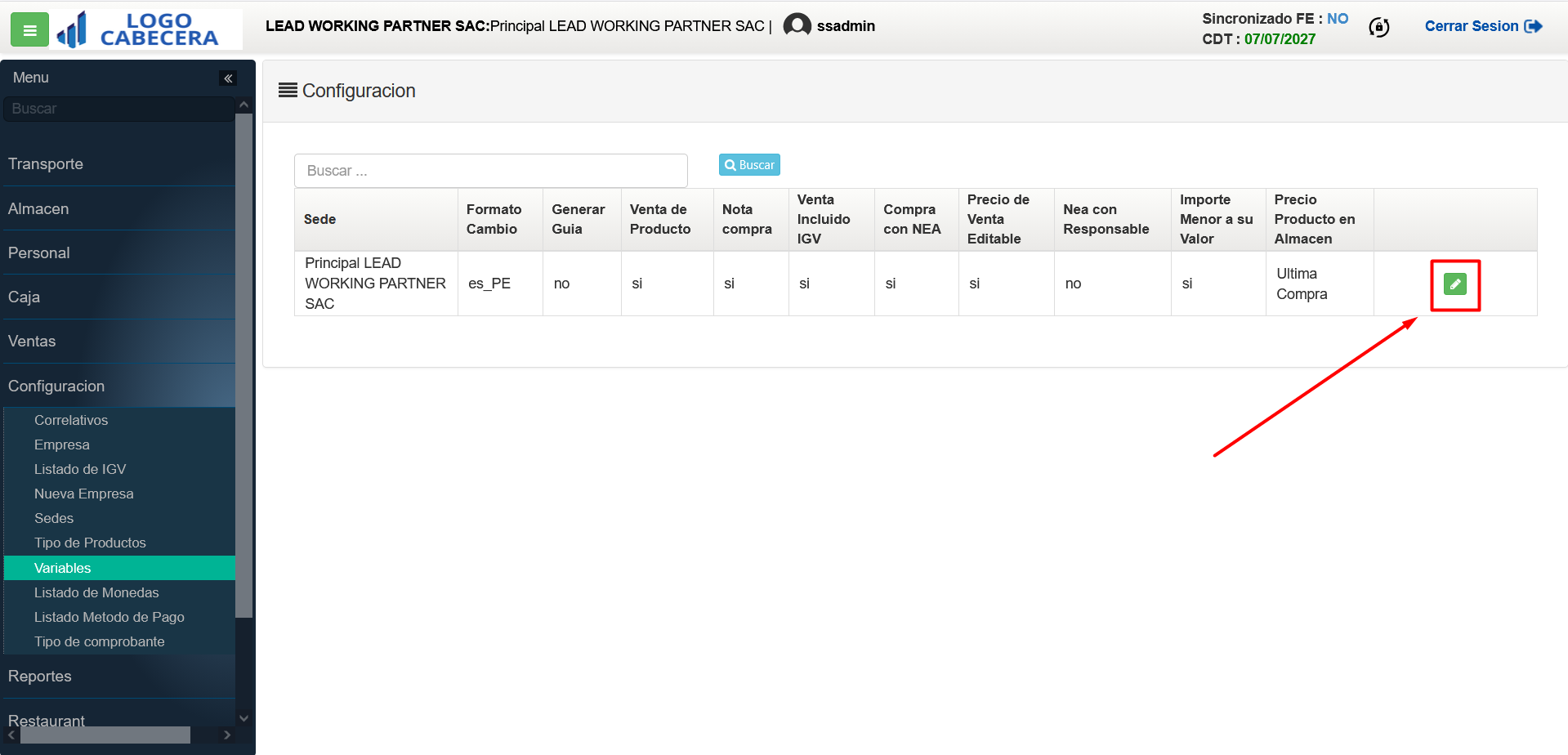 - PASO 1: Ingresar al m贸dulo de "Configuracion" y a la vista de "Variables".