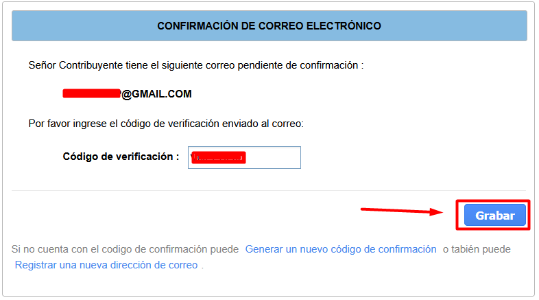 - PASO 13: Escribir el c贸digo de verificaci贸n y haz clic en el bot贸n de Grabar y el sistema mostrar谩 un mensaje de confirmaci贸n.