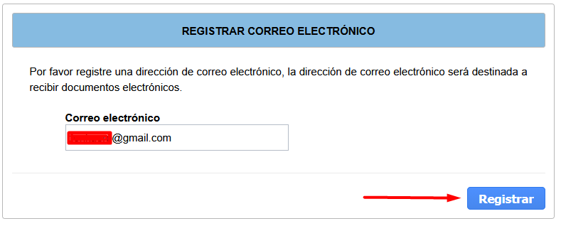 - PASO 9: Ingresar el correo electr贸nico y haz clic en el bot贸n Registrar, luego haz clic en el bot贸n Aceptar para confirmar el correo electr贸nico.