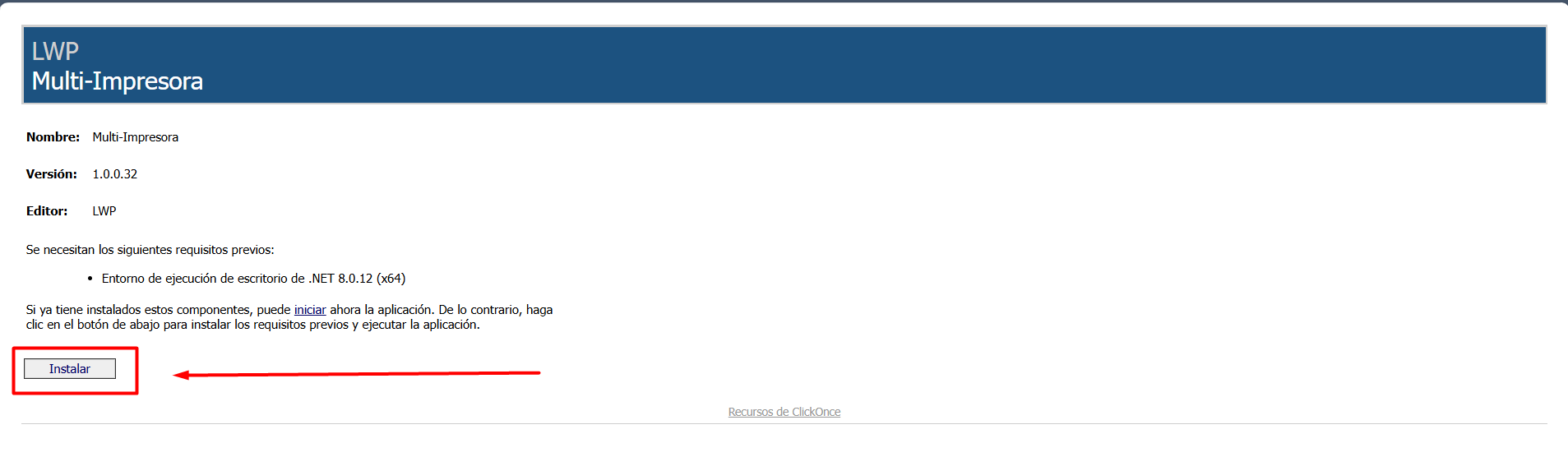 Al ingresar, visualizarás la página de descarga. Haz clic en el botón "Instalar" para descargar el archivo setup.exe.