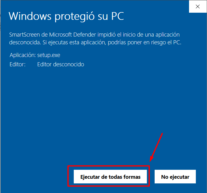 A continuación, haz clic en el botón "Ejecutar de todas formas".