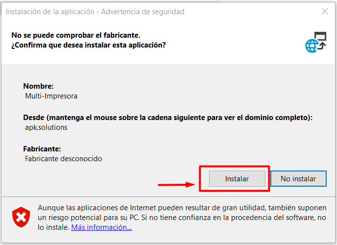 ⚠️ Advertencia: Si nos sale el siguiente mensaje, desactivamos temporalmente el antivirus hasta completar la instalación y volvemos a repetir los pasos de instalación. Recuerda reactivarlo una vez finalizado el proceso.