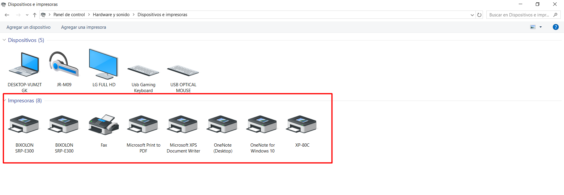 - Las impresoras aparezcan en "Dispositivos e impresoras" de Windows