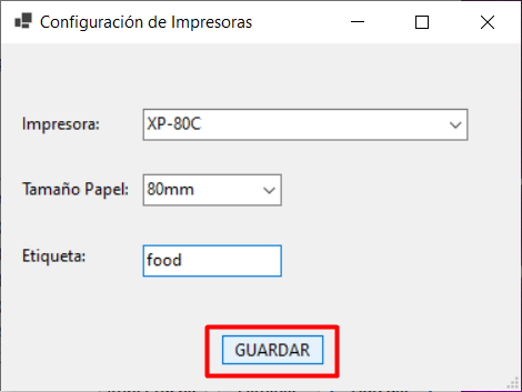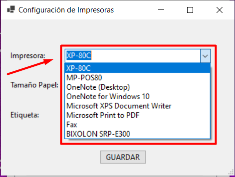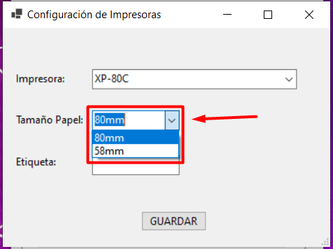 Selecciona el tama帽o de papel que utilizar谩s (generalmente 80mm para impresoras ticket).