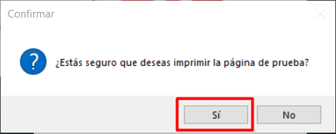 Confirma la impresi贸n de prueba en la ventana emergente.